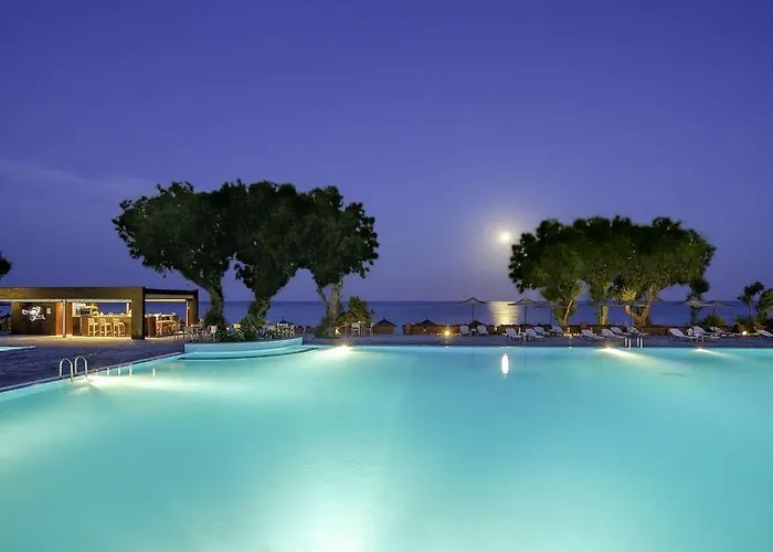 Atlantica Beach Resort Kos features direct beach access and expansive grounds along the southern coast of Kardamena. This 5-star hotel provides a range of amenities, including an outdoor swimming pool, multiple dining options, and a kids' club. With a Booking.com rating of 7.8/10, it appeals to families and couples alike.