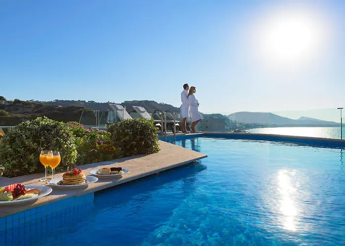 Atrium Platinum Resort & Spa, a 5-star beachfront hotel in Ixia (Rhodes), offers luxury accommodations and a diverse array of facilities including a heated pool, a wellness spa, and several gourmet dining options. Guests have access to beautiful sea views, chic interior spaces, and the proximity to vibrant entertainment along the waterfront promenade.
