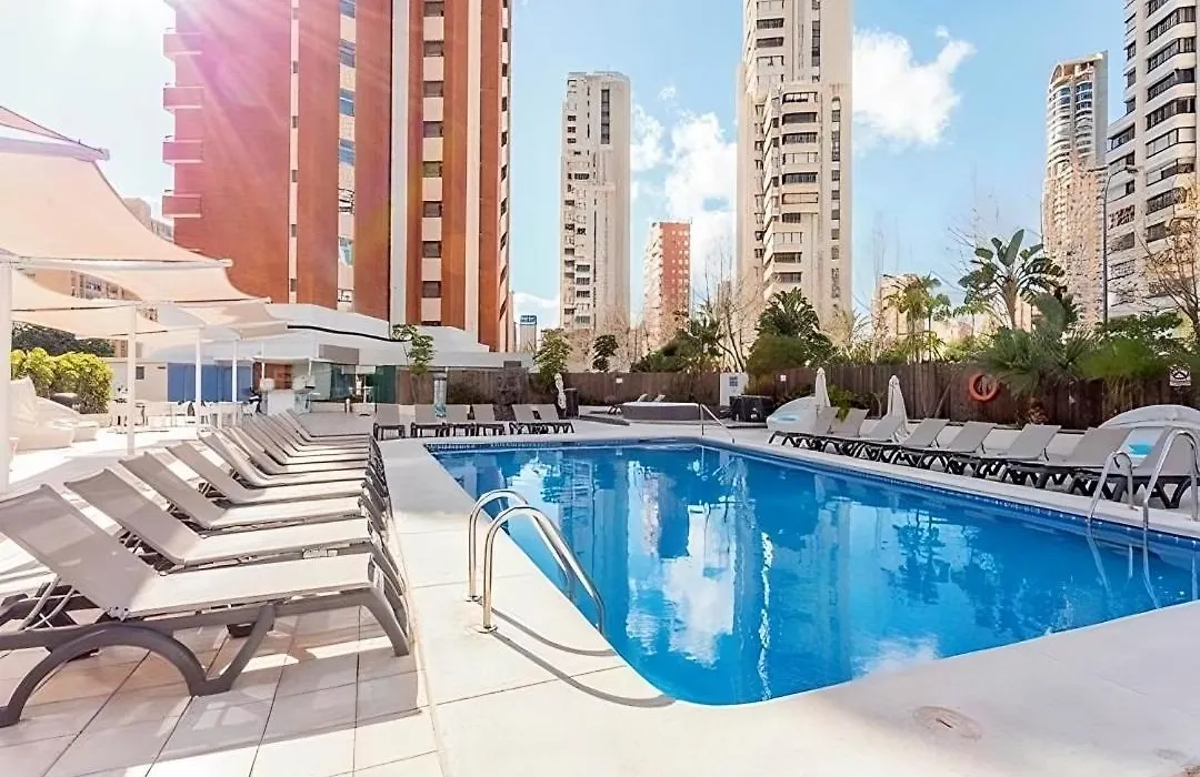 Flamingo Beach Resort - Adults Recommended features three open-air pools, a bar with Balinese beds, and offers all-inclusive services for adult guests aged 14 and above. This 4-star Benidorm hotel ensures a relaxed atmosphere tailored to adult travelers.