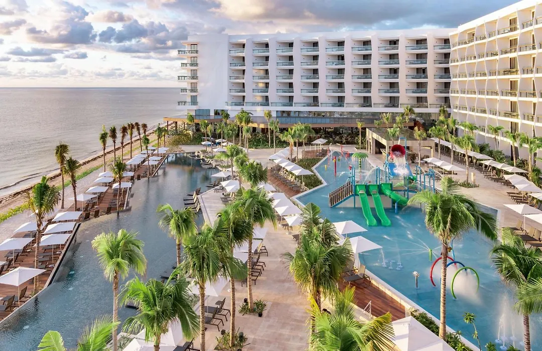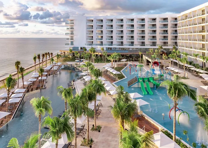 Hilton Cancun, An All-Inclusive Resort offers luxurious accommodations with 12 bars and restaurants, multiple infinity pools, and various kids clubs. This 5-star Puerto Morelos hotel features modern amenities and provides direct beach access.