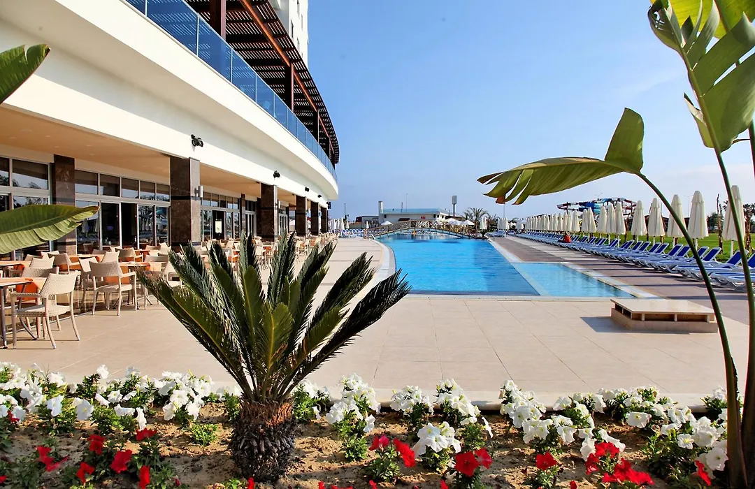 Kahya Resort Aqua & Spa offers a private beach on the Mediterranean coast and an extensive range of amenities, making it a comfortable 5-star Konakli hotel. Features include a large outdoor pool, a water park, and a spa center with wellness services.