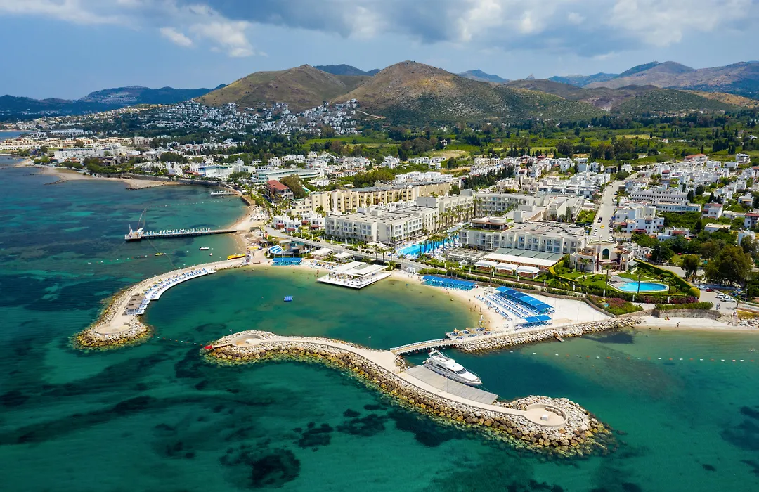 La Blanche Resort & Spa is a 5-star beachfront hotel in Turgutreis that features a large lagoon-style pool and a fantastic spa offering hammam and massage treatments. The all-inclusive resort provides various dining options and live entertainment, catering to both relaxation and leisure activities.