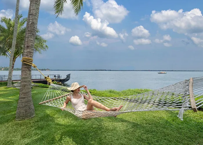 Kumarakom Lake Resort, a 5-star luxury heritage resort, is acclaimed for its serene location on the banks of Vembanad Lake and extensive amenities including multiple swimming pools, Ayurvedic treatments, and fine dining options. With a Booking.com rating of 9.5/10, it offers a unique experience with private luxury accommodations and wellness facilities.
