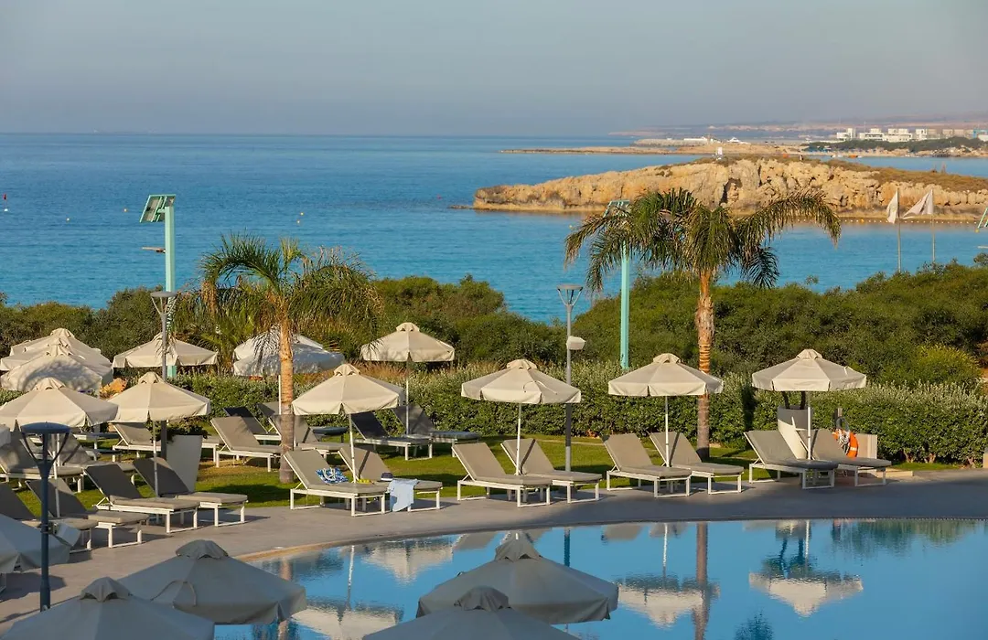 Nissiblu Beach Resort offers 5-star accommodations amidst tropical gardens with direct access to Nissi Beach. Highlights include three on-site restaurants, multiple pools, and a well-equipped gym. This Ayia Napa hotel features family-friendly and luxurious amenities.