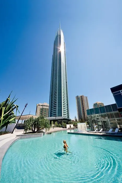 Q1 Resort & Spa - Official offers luxurious accommodation with modern amenities within its iconic, tallest residential building on the Gold Coast. This 5-star hotel features an elaborate recreation zone comprising three outdoor lagoon pools, an indoor heated lap pool, and a renowned wellness spa. Dining options include SkyPoint Bistro & Bar on Level 77, providing breathtaking views and a unique culinary experience.