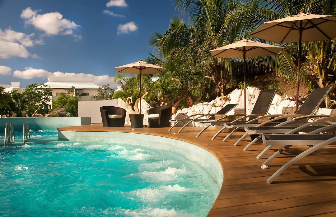 Sandos Caracol Nature Resort & Water Park (Adults Only) is a 5-star all-inclusive eco resort featuring spacious accommodations and a variety of recreational activities. Guests can explore the lush surroundings, enjoy an outdoor water park with 29 slides, and relax on the white sand beach. This adults-only Playa del Carmen hotel offers various dining options, pools, and wellness facilities.