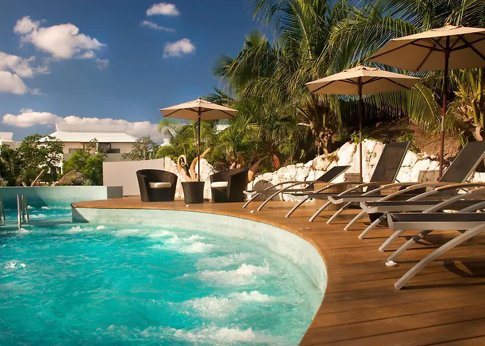 Sandos Caracol Nature Resort's eco-friendly initiatives include solar energy and sustainable practices aimed at reducing its environmental impact. The resort hosts the All-Nature Experience program, allowing guests to explore natural cenotes and wildlife in the surrounding jungles. It is located approximately 10 km from Aeropuerto de Playa del Carmen.