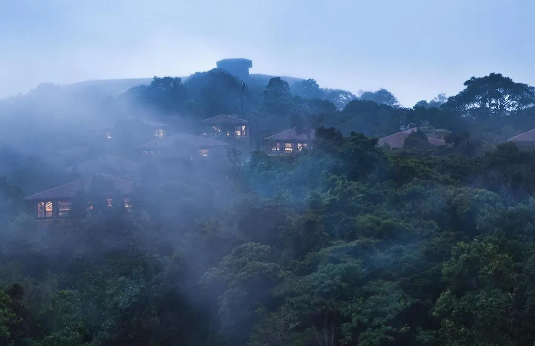 The rooms at Taj Madikeri Resort & Spa Coorg are designed with sustainable architecture, featuring large windows that provide sweeping views of the rainforest. Options include family-friendly two-bedroom cottages and luxurious pool villas with private plunge pools. Most accommodations come equipped with a flat-screen TV, minibar, and a fireplace.