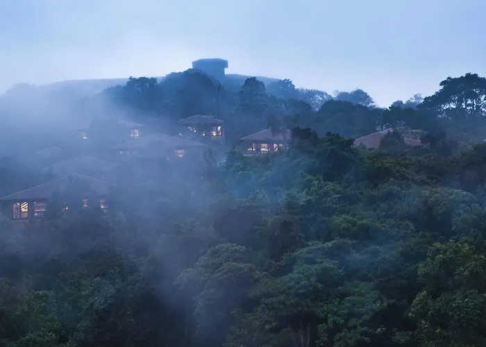 Taj Madikeri Resort & Spa Coorg offers luxurious accommodations and extensive dining options, set within a picturesque rainforest environment. This 5-star hotel features a large spa and outdoor swimming pool, providing high-quality leisure facilities for guests.