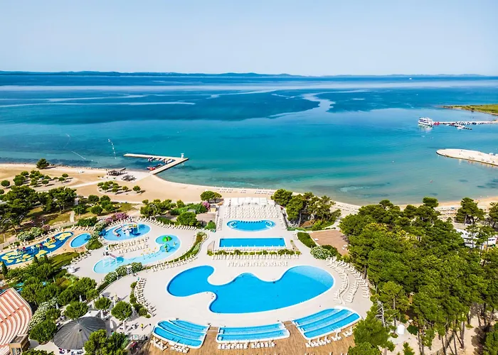 Zaton Holiday Resort, a 4-star hotel with an 8.2/10 rating on Booking.com, features a new pool complex and a variety of family-friendly activities. The resort offers pet-friendly mobile homes and extensive sporting facilities amidst lush Mediterranean nature, ensuring an engaging experience for guests of all ages.