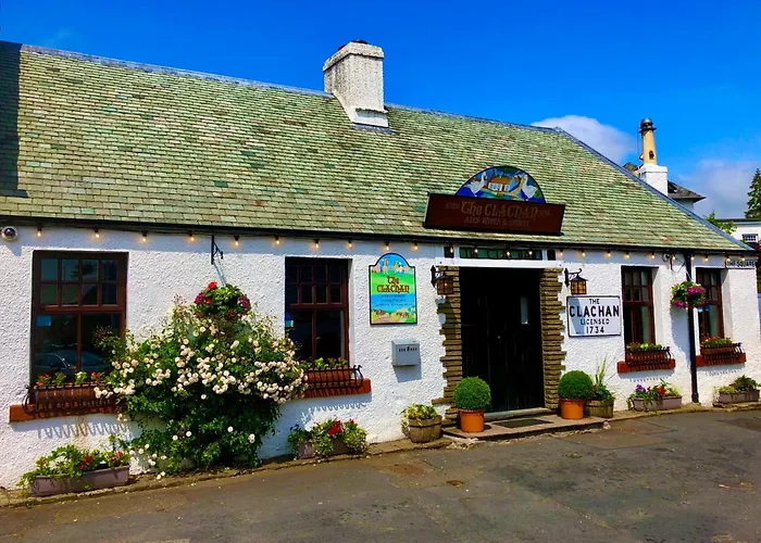 The Clachan Inn, a 3-star Drymen hotel rated 8.9/10 on Booking.com, features cozy accommodations and a warm atmosphere. It is known for its historical significance as Scotland's oldest licensed pub, offering a wide selection of drinks, particularly whisky and local cuisine.