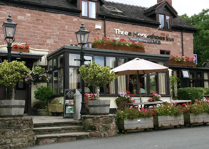Three Horseshoes Country Inn offers a picturesque retreat with four-star accommodations nestled in the Staffordshire Peak District. This pet-friendly Leek hotel features a spa, award-winning dining, and various outdoor spaces with stunning views over the Roaches.