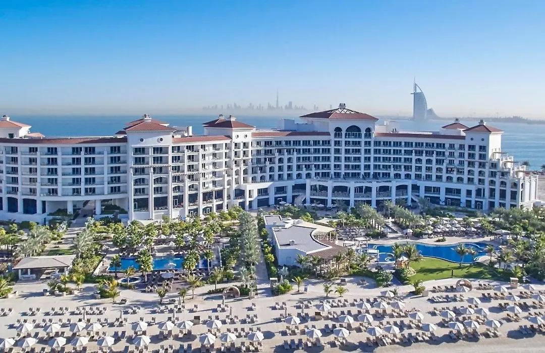 Waldorf Astoria Dubai Palm Jumeirah is a luxurious 5-star hotel featuring a private beach, six iconic restaurants, and exceptional leisure facilities. Guests can indulge in a lavish buffet at the hotel's main dining venue, Mezzerie, and enjoy unparalleled service at the exclusive Pearl Club.